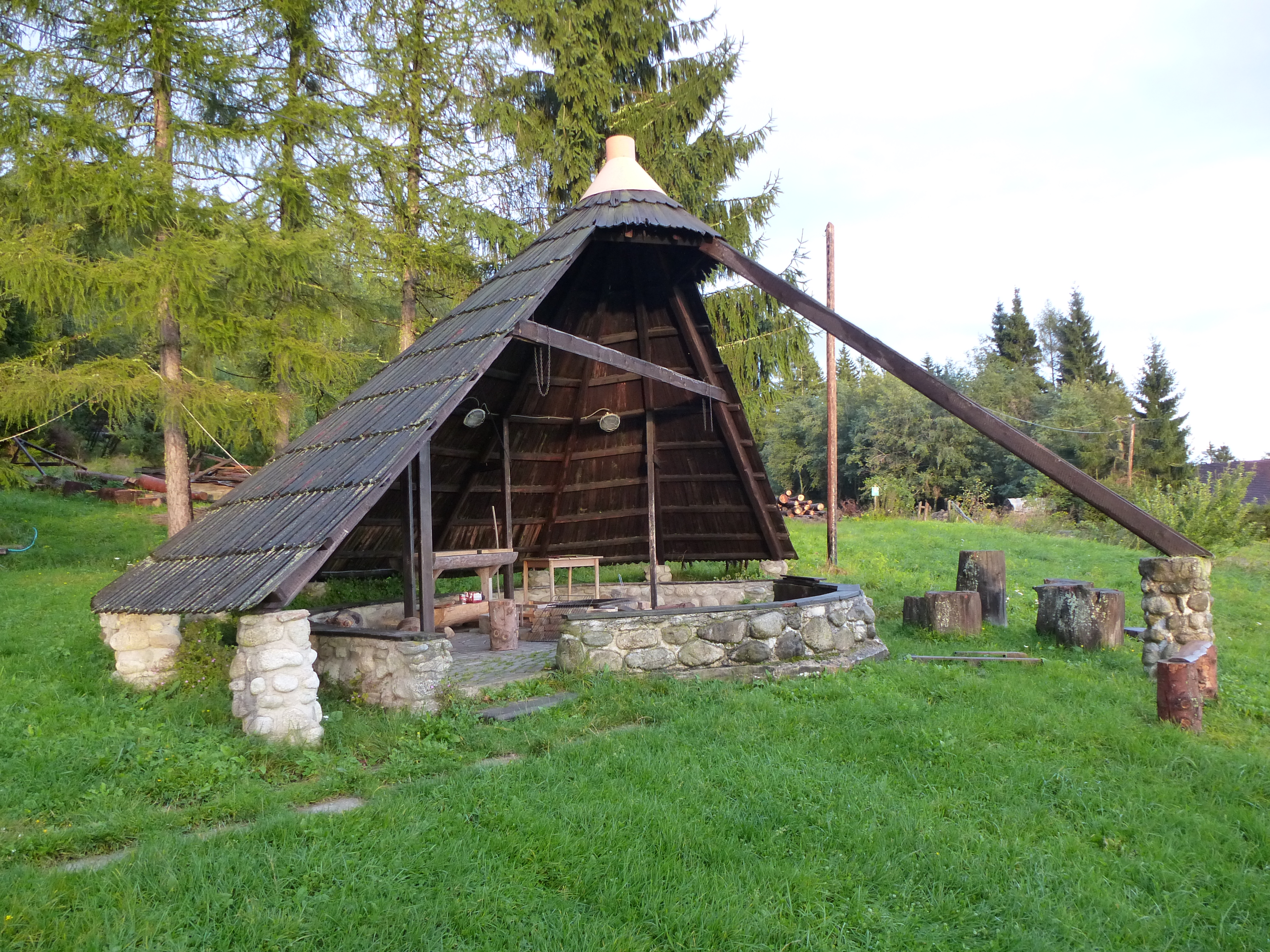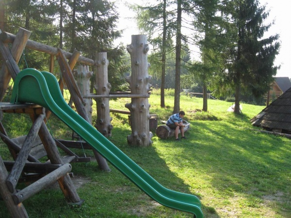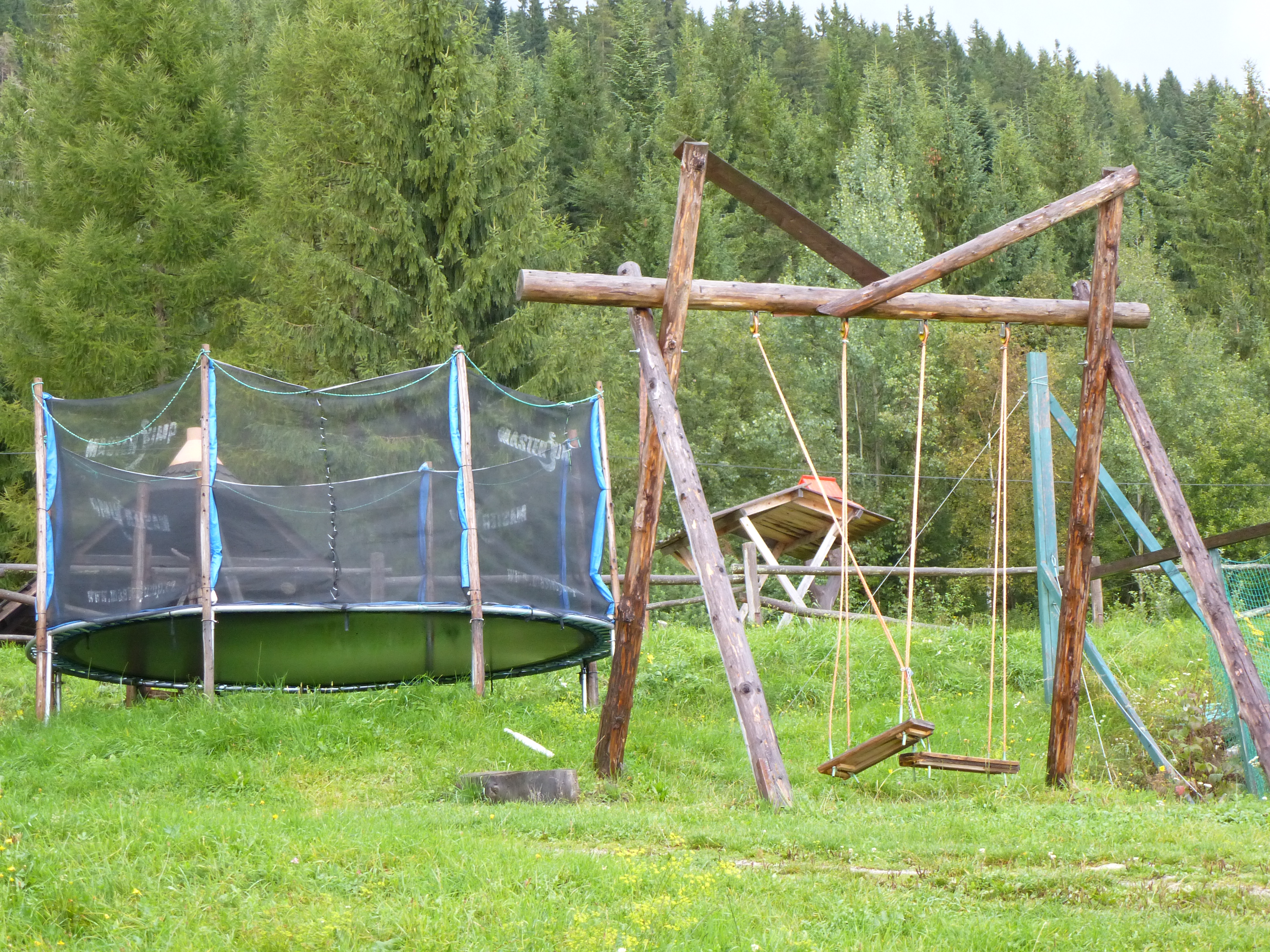 K dispozícii je aj kryté ohnisko, trampolína, detský kolotoč, hojdačky a stôl na stolný tenis.